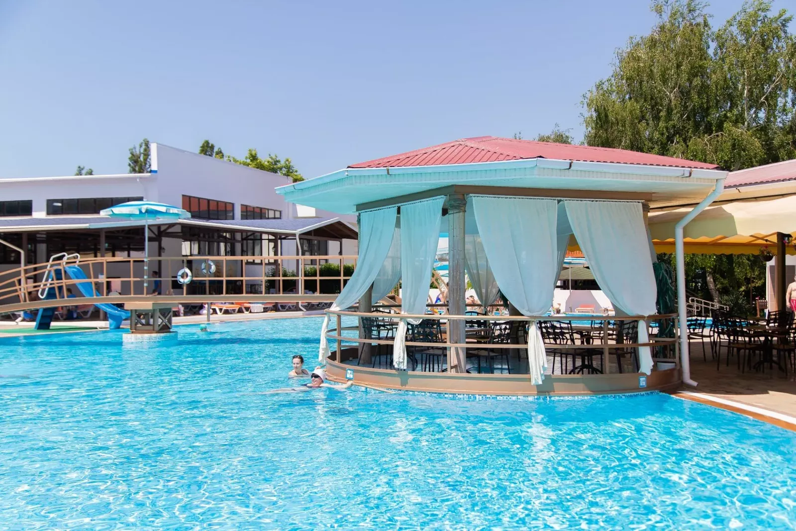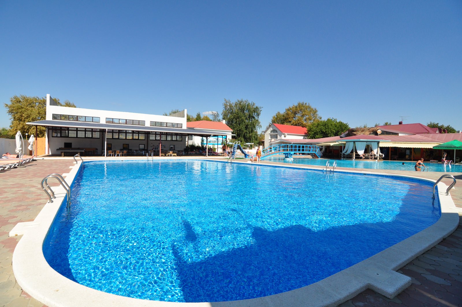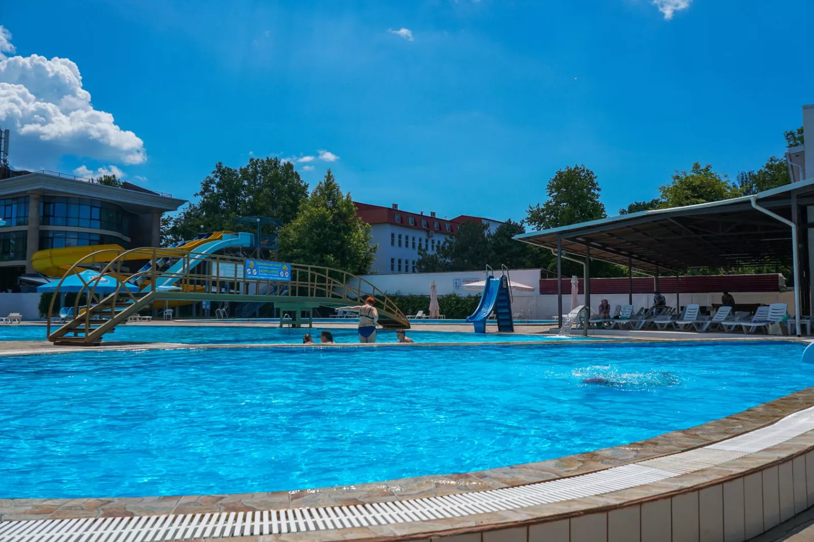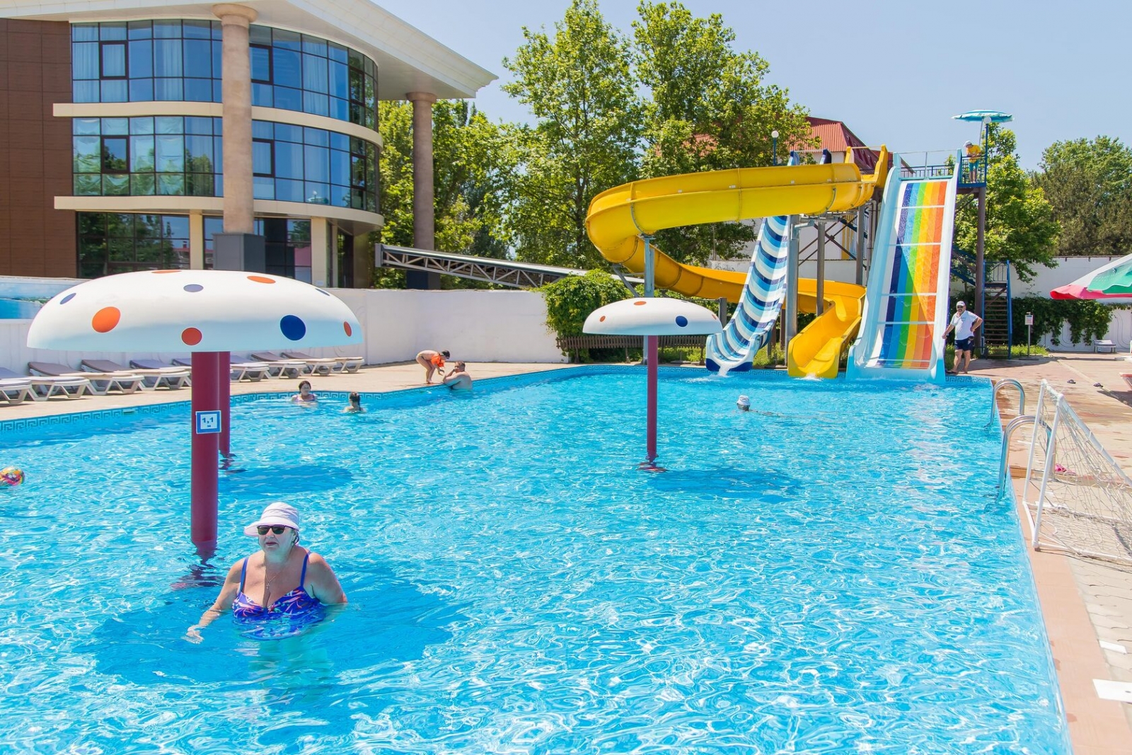 Для клиентов санатория функционирует комплекс бассейнов: целых четыре открытых подогреваемых бассейна, один из которых детский, с горками, грибками и фонтанами. Вокруг них расположены комфортные релакс-зоны с навесами и зонтами. Кроме этого имеется крытый бассейн в сауне.