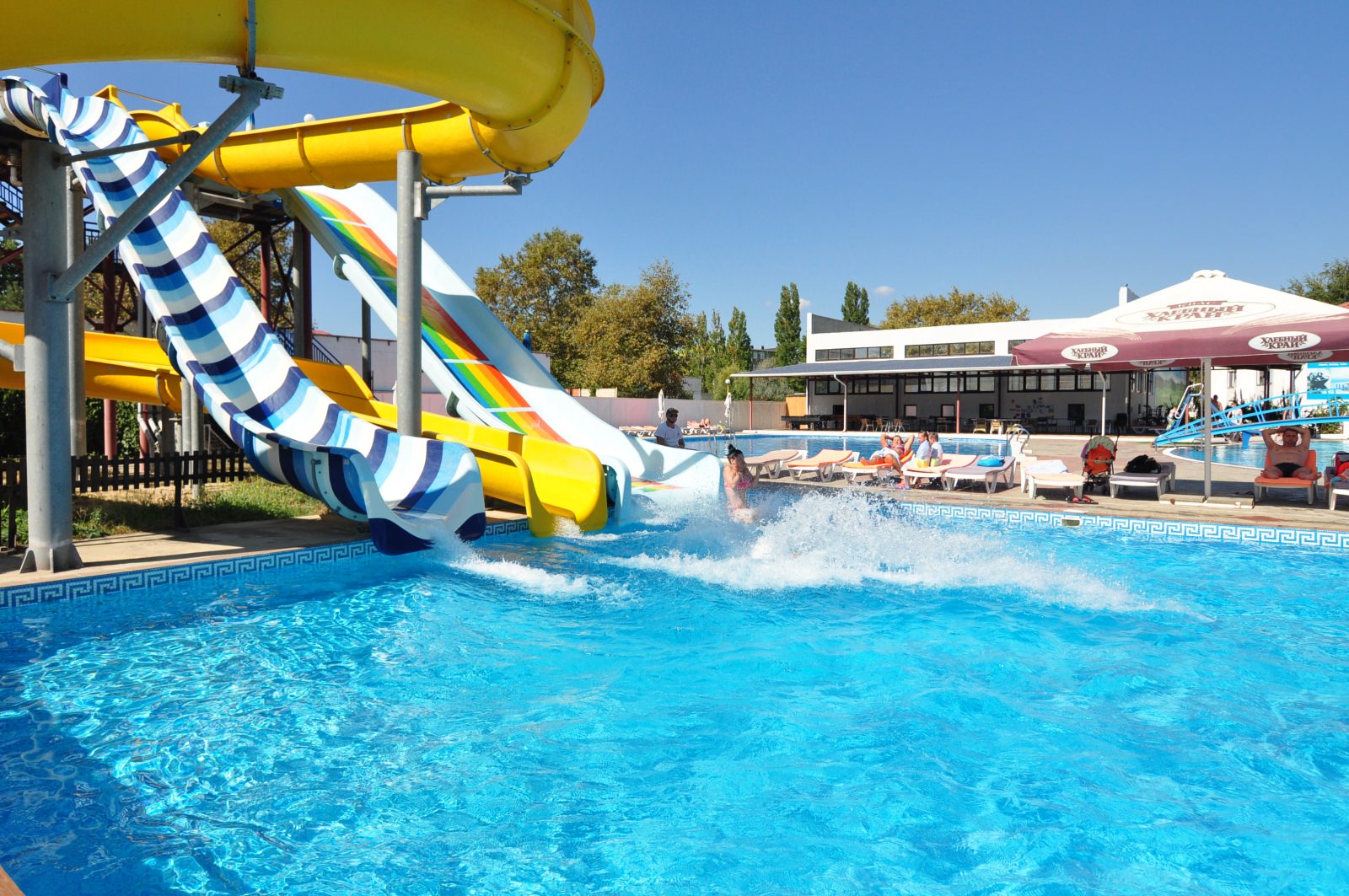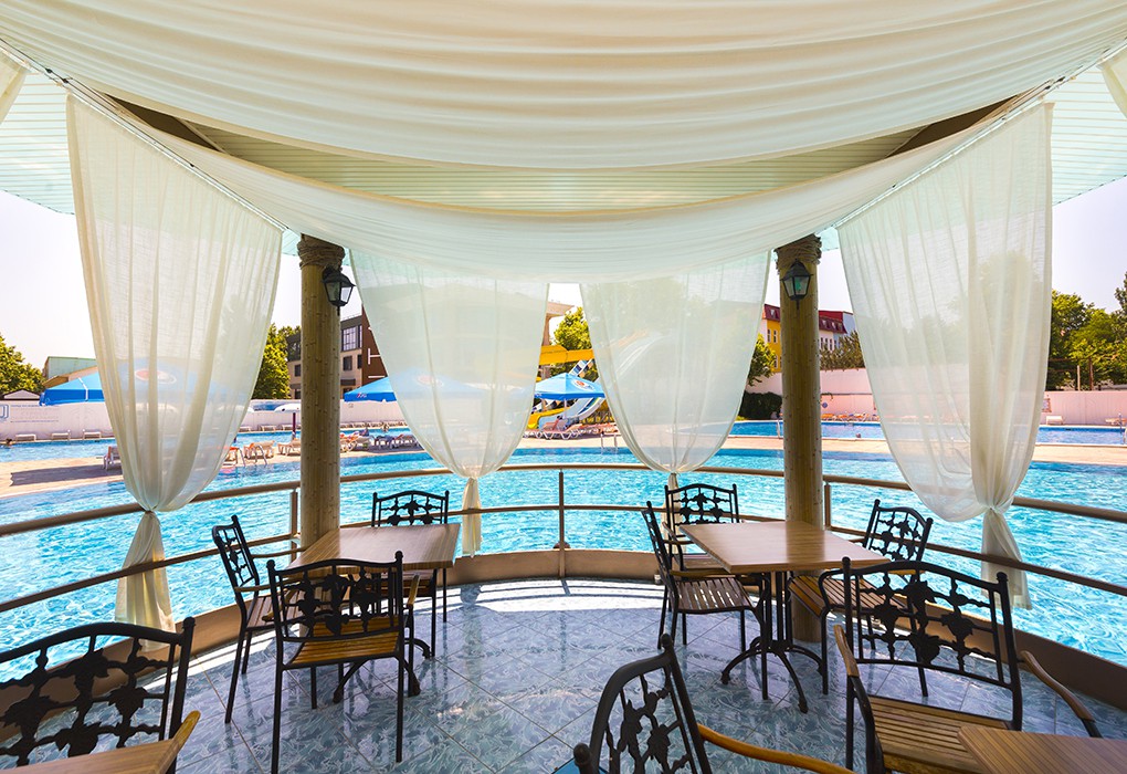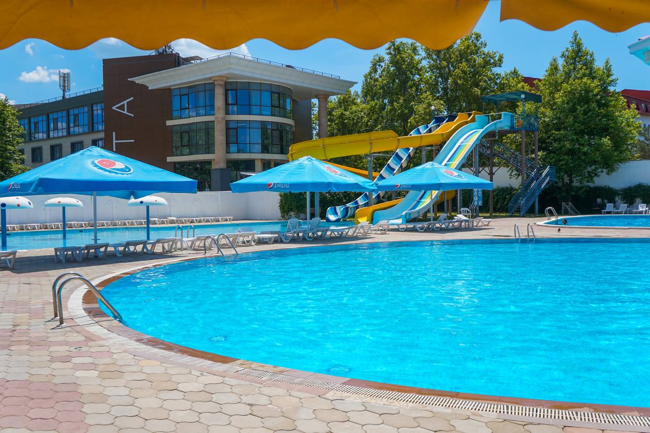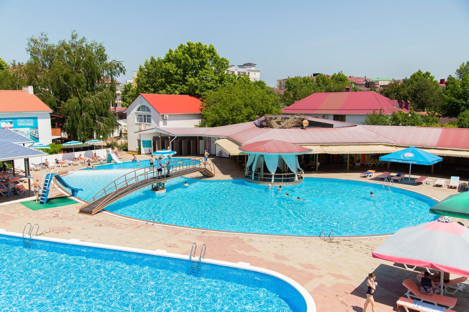 Для клиентов санатория функционирует комплекс бассейнов: целых четыре открытых подогреваемых бассейна, один из которых детский, с горками, грибками и фонтанами. Вокруг них расположены комфортные релакс-зоны с навесами и зонтами. Кроме этого имеется крытый бассейн в сауне.