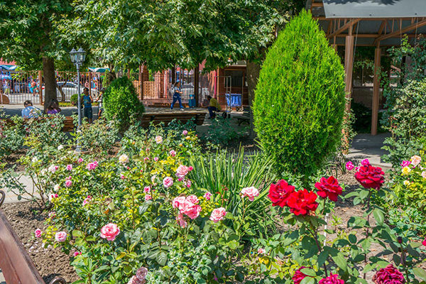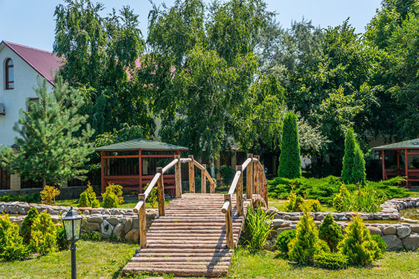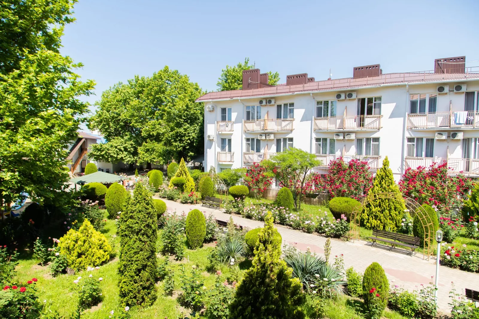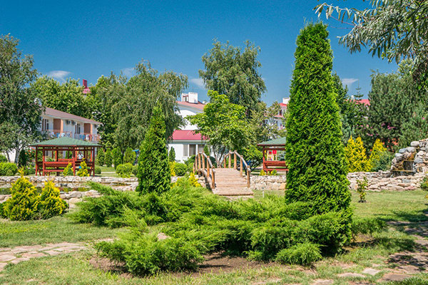 Санаторий имеет собственную территорию площадью в 2,2 га, огороженную и охраняемую, благоустроенную зелеными насаждениями, цветниками и беседками, уютными зонами отдыха, декоративным мини- прудом с рыбками.