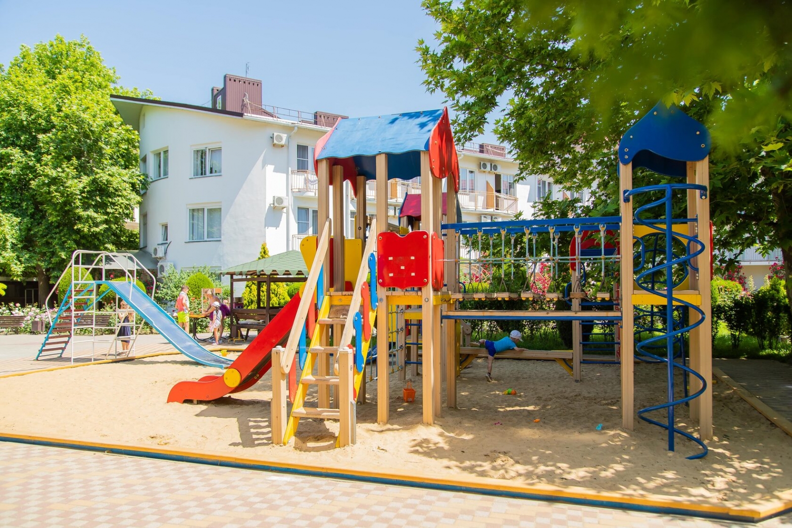 Для детворы в санатории создана отдельная инфраструктура. В ней – бассейн для детей с игровой зоной возле него, мини-аквапарк, детская игровая площадка и комната для игр в помещении под присмотром воспитателя. Ребятам предлагаются настольные игры и развлечения от аниматоров.