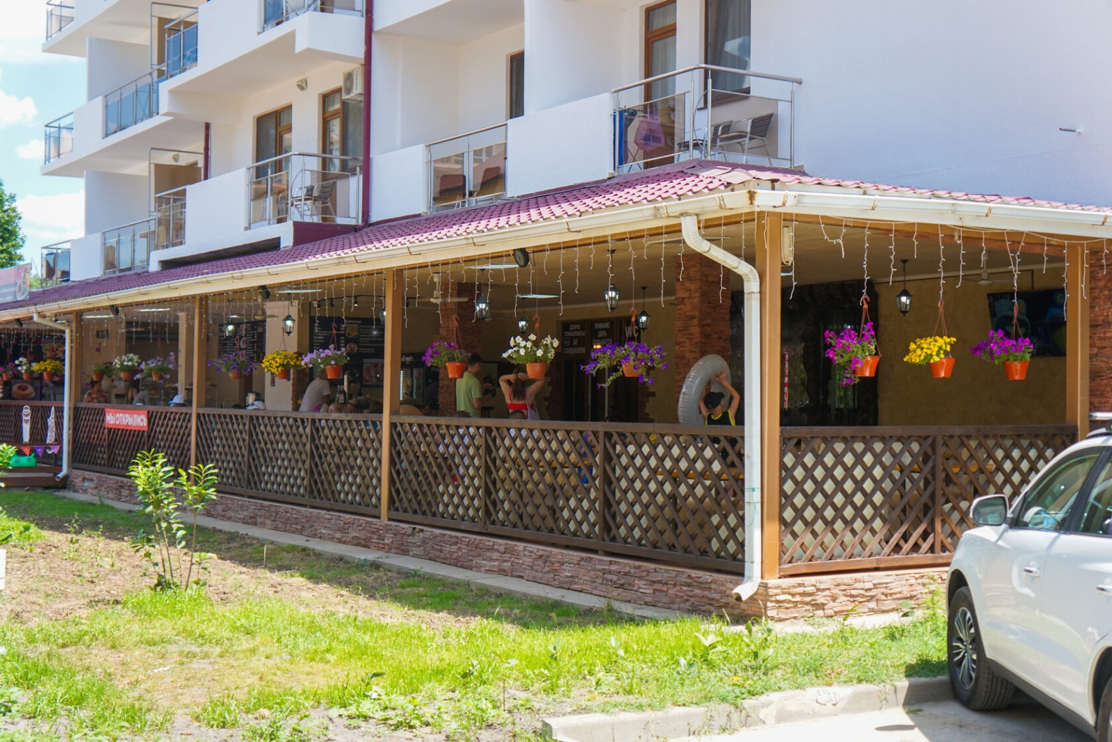 Рядом с ним расположены все основные объекты поселковой инфраструктуры. Прогулочная набережная поселка «Паралия» – место, где находятся аквапарк и Парк развлечений, дельфинарий, концертные площадки, местные рынки и магазины, рестораны и кафе.
